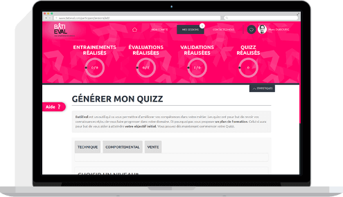 Plus qu’un simple outil d’évaluation, Bâtieval vous propose de véritables solutions d’acquisition de compétences. Sélectionnez la compétence et le niveau que vous souhaitez évaluer pour obtenir votre résultat. En fonction de celui-ci, Bâtieval est capable de vous proposer un plan de formation et d’entrainement pour devenir un expert dans votre domaine.